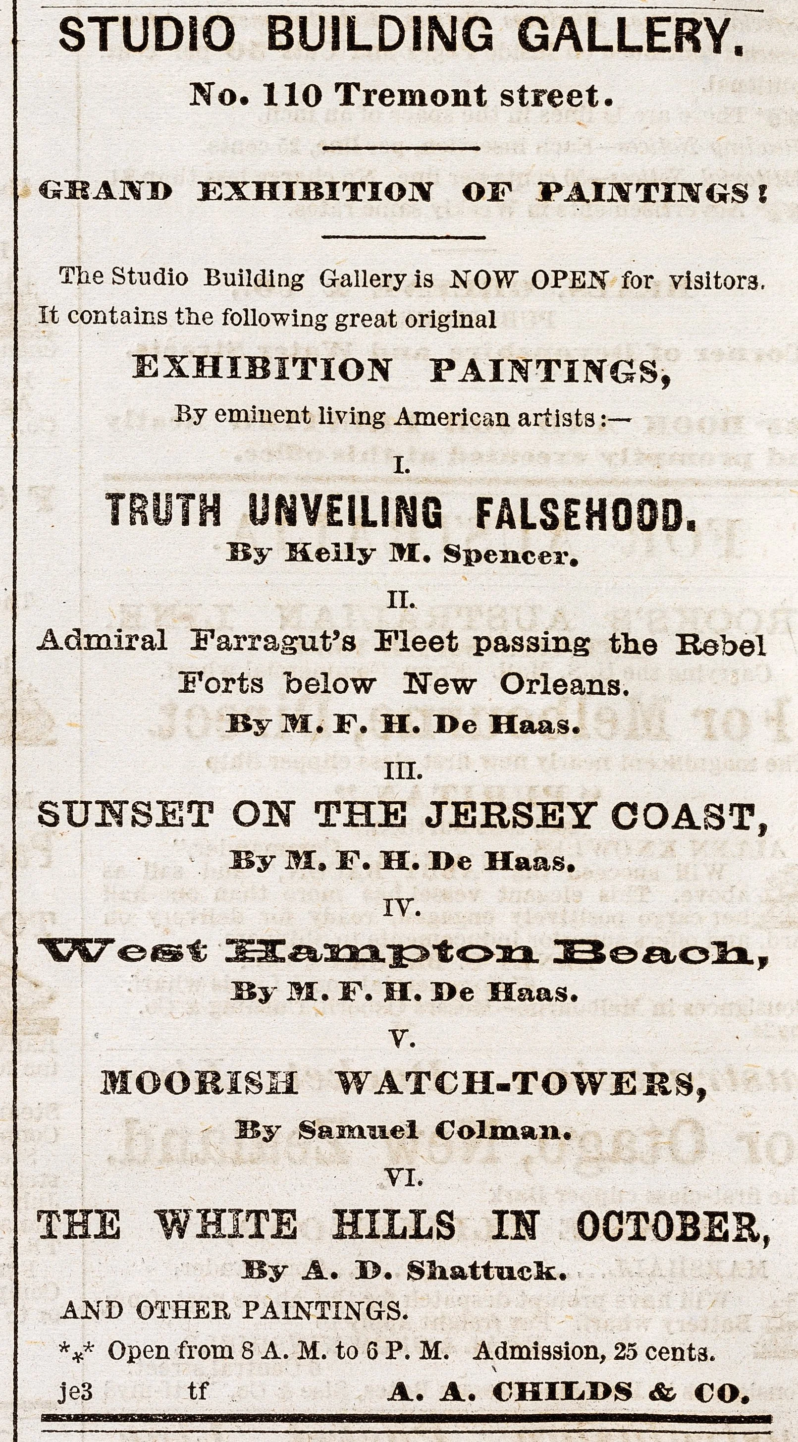 From the opening of the Tremont Street Studio Building in 1861, it served as the headquarters of Boston’s art community in the second half of the 19th century, even hosting an annual exhibition. Gerry usually spent his winters in a studio there and could be observed during open-studio receptions transforming his summer and fall sketches into paintings.